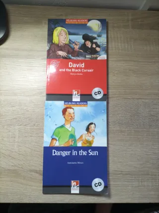 Dos libros de lectura en inglés de la serie Helbling Readers, cada uno con su CD. - David and the Black Corsair - Danger in the Sun