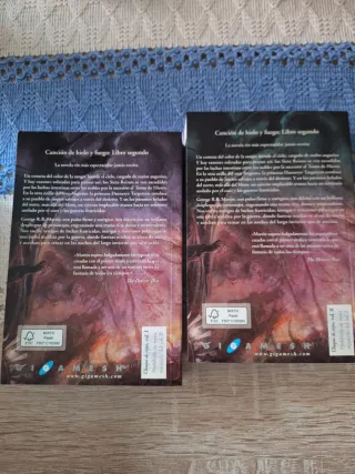"Canción de Hielo y Fuego" de George R. R. Martin, es el libro segundo de la saga "Juego de Tronos", una obra épica que ha cautivado a millones de lectores en todo el mundo. La edición en tapa blanda, publicada por Ediciones Gigamesh, en dos tomos, se adentra en los Siete Reinos de Westeros y la lucha por el Trono de Hierro. La traducción de Cristina Macía Orío es impecable y logra transmitir la complejidad de los personajes y la profundidad de la trama. Una vez que se comienza a leer, es difícil dejar de hacerlo, ya que Martin es un maestro en la creación de giros inesperados y emocionantes.