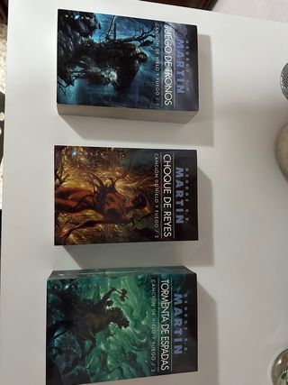 Libro 1, 2 y 3 de la saga de libros de juego de tronos: "Canción de hielo y fuego". Libro 1: Juego de tronos Libro 2: Choque de reyes Libro 3: Tormenta de espadas
