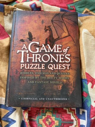 Libro de acertijos sobre el mundo de Juego de Tronos. Tiene un poco arrugado los bordes del canto.