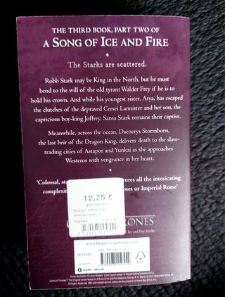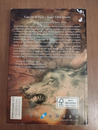 Tercer libro de la aclamada saga Canción de hielo y fuego, que inspiró la serie Juego de Tronos. En esta entrega, las intrigas, traiciones y batallas alcanzan su punto más intenso, con giros inesperados y personajes inolvidables.
