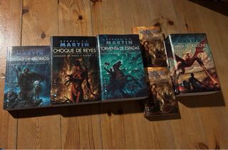 Los 5 libros de la saga (Juego de tronos, Choque de reyes, Tormenta de espadas, Choque de reyes y Danza de dragones). Se hacen envíos.