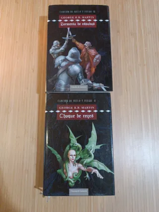 Choque de Reyes Tormenta de espadas Precio por el lote de los dos volúmenes de esta serie que inspiró juego de tronos. Con algún signo externo del paso de los años pero muy buen estado general.