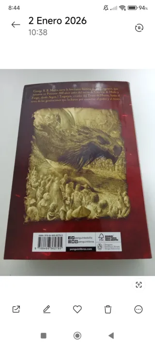 Libro de fantasía política estilo juego de tronos con muy buenas reseñas. No lo he leído así que está casi intacto, pero tiene algunas manchas pequeñas que se ven en la foto.