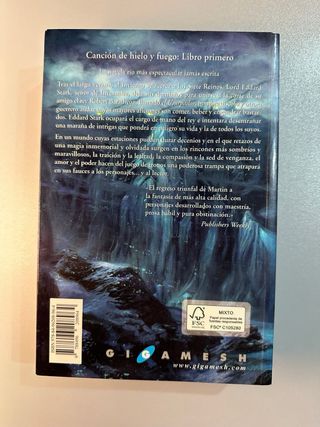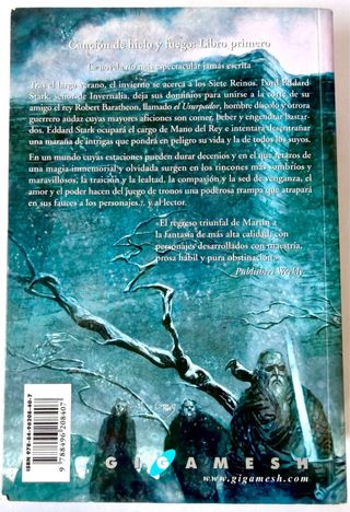 Primer libro de la saga de George R.R. Martin de la editorial Gigamesh. Descatalogado en tiendas. Está en muy buen estado.