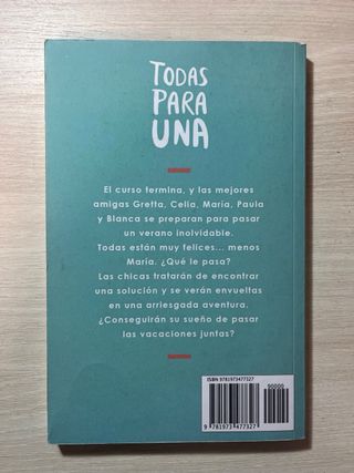 El curso termina, y las mejores amigas Gretta, Celia, María, Paula y Blanca se preparan para pasar un verano inolvidable. Todas están muy felices... menos María. ¿Qué le pasa? Las chicas tratarán de encontrar una solución y se verán envueltas en una arriesgada aventura. ¿Conseguirán su sueño de pasar las vacaciones juntas? Libro leído una vez, tiene una pequeña mancha verde de rotulador en la zona de las hojas