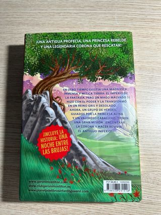 Libro en catalán de Geronimo Stilton. Quart viatge al Regne de la fantasía. Con 3 perfumes misteriosos, los cuales te encuentras en las páginas según sucede el relato.