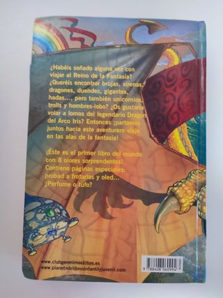 Gerónimo Stilton en el Reino de la Fantasía 384 páginas Geronimo Stilton viaja al Reino de la fantasía y descubre cómo huelen las brujas, las sirenas, los dragones, las hadas, los duendes... ¡Éste es el primer libro del mundo con 8 olores sorprendentes! Frótalas y huele, ¿perfume o tufo? Un excelente regalo de Navidad.