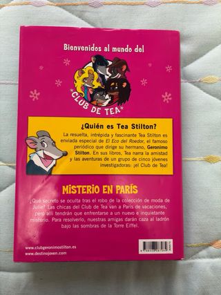 Libro ideal para niñas: Tea Stilton “Misterio en París”. Muy recomendable para peques que se inician en la lectura, con letra grande y legible. Incluye al final juegos, actividades y recetas. El libro está en perfecto estado, a excepción de la portada que pone el nombre del anterior dueño.