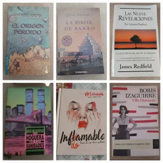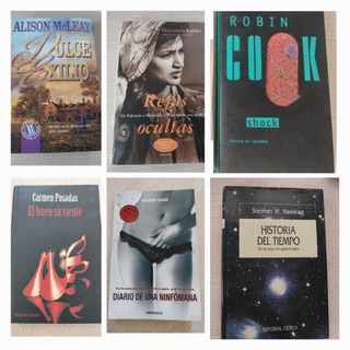 Rejas Ocultas de Hameeda Lakho Dulce exilio de Alison McLeay Diario de una ninfomana de Valerie Tasso El buen sirviente de Carmen Posadas Historia del tiempo de Stephen W.Hawking. Shock de Robin Cook Las nueve revelaciones de James Redfield El Origen perdido de Matilde Asensi La biblia de barro de Julia Navarro Indomable de Srtabebi Noche sobre las aguas de Ken Follet La Hoguera de las vanidades de Tom Wolfe La Jeringuilla de Pedro Casals Villa Diamante de Boris Izaguirre Cada uno: 3€ Dos: 5€ Tres: 8€ No se rebaja el precio si te gustan los libros visita mi perfil.
