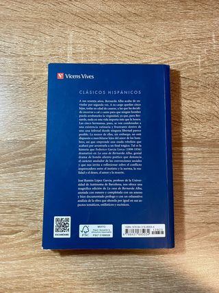 NO REBAJO Libro La Casa De Bernarda Alba , Clásicos Hispánicos, Vicens Vives. Lectura complementaria para la ESO. Usado una vez, bien cuidado Para recoger en CAMPANAR, no me desplazo