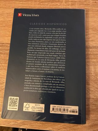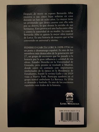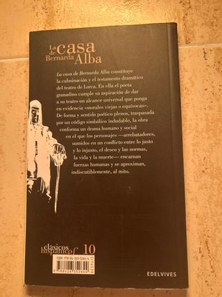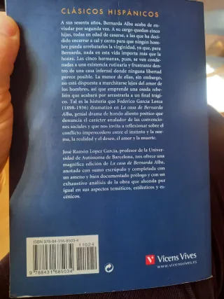 Vendo libro La casa de Bernarda Alba. Está en buenas condiciones y no tiene ningún subrayado.