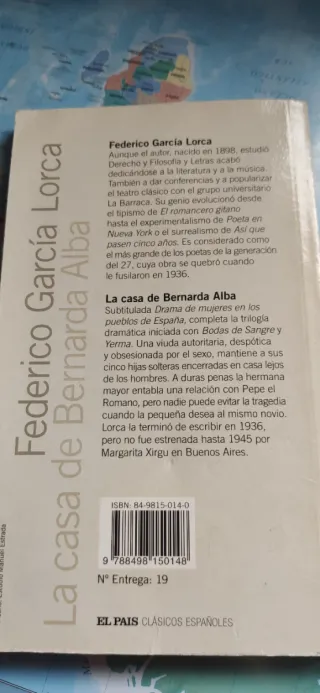 Libro “La casa de Bernarda Alba” de Federico García Lorca, una de las obras más importantes del teatro español. ✔️ Ideal para ESO y Bachillerato ✔️ Lectura obligatoria en muchos centros ✔️ Clásico de la literatura española ✔️ Perfecto para exámenes, trabajos y comentarios de texto 📌 Idioma: español 📌 Autor: Federico García Lorca Entrega rápida por Wallapop Cualquier duda, ¡escríbeme sin problema! #libros #literatura #garcialorca #teatro #bachillerato #eso #lecturaobligatoria #clasicos #instituto #estudios