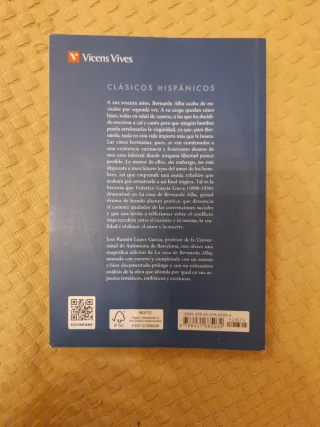 Edición de Vicens Vives, colección Clásicos Hispánicos. Texto íntegro de Federico García Lorca, con edición y notas de José Ramón López García. Libro en perfecto estado, sin subrayados ni marcas. Ideal para estudiantes, opositores o amantes del teatro que sepan apreciar un buen drama con abanicos, represión y sillas de anea. 📦 Estado: Impecable. Ni Bernarda se atrevería a levantarle la voz.