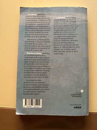 Vendo La Celestina, clásico de la literatura española escrito por Fernando de Rojas. Libro en buen estado, perfecto para lectura o para estudiantes que lo necesiten para clase.