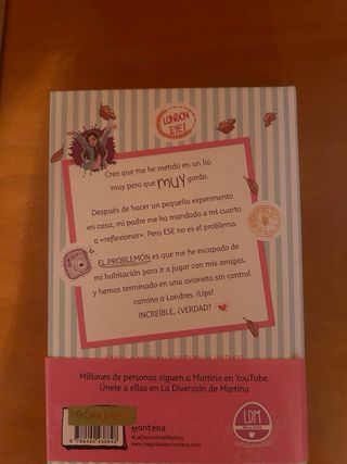 Libro juvenil: La diversion de Martina 2 ¡aventuras en Londres! Creo que me he metido en un lío pero que MUY gordo... Después de hacer un pequeño experimento en casa, mi padre me ha mandado a mi cuarto a «reflexionar». Pero ese no es el problema. El PROBLEMÓN es que me he escapado de mi habitación para ir a jugar con mis amigas, y hemos terminado en una avioneta sin control camino a Londres... ¡Ups! Increíble, ¿verdad? ¡Únete a mi plan loquísimo y olvídate de la palabra «aburrimiento»!