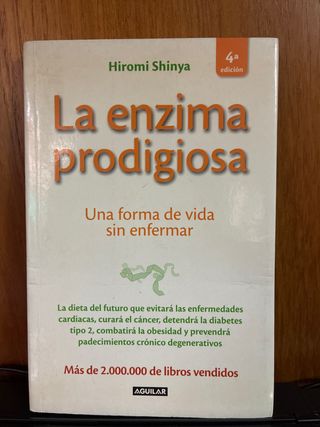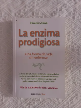 La medicina oficial te está matando. Pastillas, citas, más pastillas. Y sigues hecho mierda. Este es el libro del japonés que lo cambió todo. "La enzima prodigiosa." El best-seller de los 2 millones de copias. La teoría es simple: tienes una "enzima madre" en el cuerpo. Si la gastas, te jodes y te mueres. Si la cuidas, curas el cáncer, la diabetes, la obesidad... todo el puto pack. Es la biblia de la "dieta del futuro". Está usado, claro. Leído. Tiene el trote normal (ver fotos), pero está limpio por dentro. Sin subrayar. Para los que están hartos de sentirse envenenados. Tómalo o déjalo.