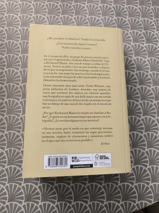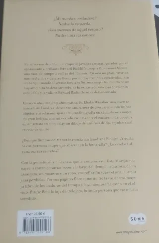 Una novela de misterio que entrelaza pasado y presente: un grupo de artistas en 1862, un asesinato, un robo y una joya desaparecida. Más de un siglo después, una joven archivista encuentra pistas olvidadas que la llevan a descubrir secretos ocultos en Birchwood Manor. Con la elegancia característica de Kate Morton, esta historia habla de arte, amor y pérdidas. Tapa dura con sobrecubierta, en muy buen estado. 📌 Etiquetas: novela histórica, intriga, misterio, narrativa contemporánea, Kate Morton, secretos familiares, literatura inglesa.