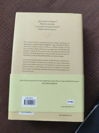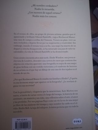 La gran novela de una de las grandes autoras contemporáneas. ¿Mi nombre verdadero? Nadie lo recuerda. ¿Los sucesos de aquel verano? Nadie más los conoce. En el verano de 1862, un grupo de jóvenes artistas, guiados por el apasionado y brillante Edward Radcliffe, viaja a Birchwood Manor, una casa de campo en Berkshire. Estado: Como Nuevo. Leído una vez. Precio Original: 22,90€