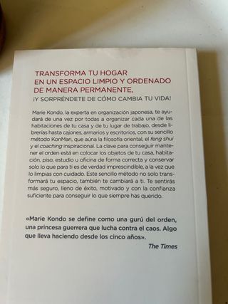 Libro de Marie Kondor. En perfecto estado y muy recomendable para ayudarte a organizar-te mejor. En mi caso me ayudó al tener un piso pequeño y poder-lo aprovechar al máximo su espacio.