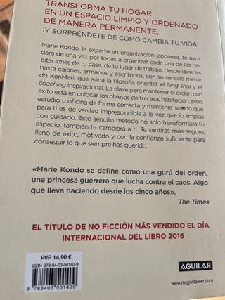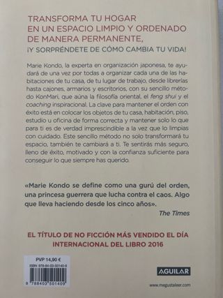 ¿Te has preguntado cuantísimas cosas acumulamos, que ya no necesitamos o que simplemente ya no sabes ni cómo colocar? La experta en organización, Marie Kondo, explica y da en este libro unas sencillas herramientas, a través de su método llamado KonMari, que te darán las claves sobre cómo transformar tu hogar y de esta forma también tu vida. ¡Te hará sentir mucho mejor! ;) ¡Anímate a probar el método de esta gurú japonesa! El libro se encuentra como nuevo, en perfectas condiciones...Limpito, limpito, como la casa que se te quedará, después de seguir sus pasos jaja :)