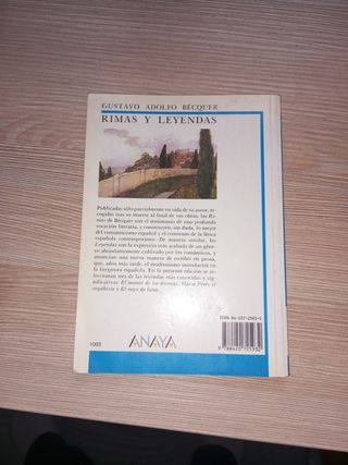libro Rimas y leyendas de Gustavo Adolfo Bécquer, editorial Anaya ISBN 978 84 678 7130 2