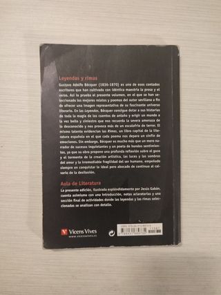 Sinopsis: El presente volumen reúne los mejores relatos y poemas de Gustavo Adolfo Bécquer con el fin de ofrecer una imagen representa- tiva del rico y fascinante universo del autor. En las Leyendas, Bécquer erige un mundo a la vez bello y siniestro que nos recuerda la amenaza de lo desconocido y nos provoca más de un escalofrío de terror. En las Rimas, hallamos una profunda reflexión sobre el gozo y el tormento de la creación ar- tística, las luces y las sombras del amor, y la irremediable fragilidad del ser humano.