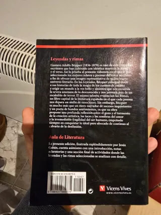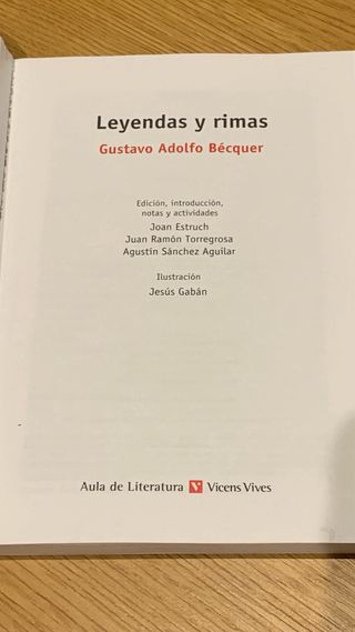 Libro Leyendas y Rimas, Gustavo Adolfo Bécquer, usado solo durante un curso escolar.