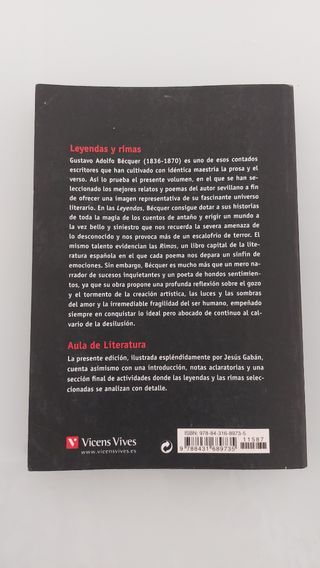 Libro "Leyendas y rimas" de Gustavo Adolfo Bécquer. Editorial Vicens Vives.