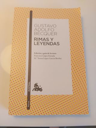 Última versión del libro de Gustavo Adolfo Bécquer: Rimas y Leyendas. Tiene sólo 1 mes, está nuevo. No ha sido transportado, y no tiene apenas ninguna marca. No está marcado ni subrayado.