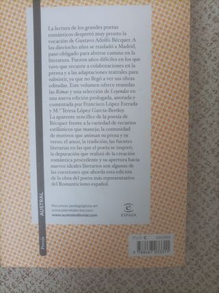 Libro Rimas y leyendas de Gustavo Adolfo Bécquer MUY BUEN ESTADO
