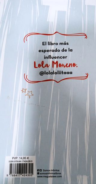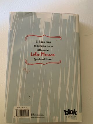 Libro de la influencer Lola Moreno Cubre portada con signos de uso, el libro totalmente nuevo, tapa dura