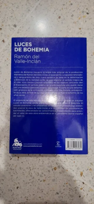 Libro Luces de Bohemia Esperpento Autor Ramón del Valle-Inclán Edición Alonso Zamora Vicente Colección Austral Nueva edición / Lectura recomendada Editorial Espasa * Libro bien conservado, le falta la primera hoja (hoja blanca), por lo que no afecta en nada. # Oportunidad # Oferta # Lectura # Català # Poema # Literatura Clásica # Biblioteca # Teatro # Escena # Taller de Lectura #