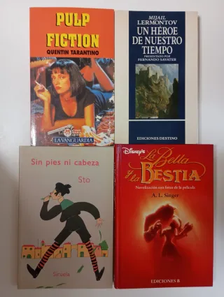 -Pulp Fiction. Quentin Tarantino / 5€. -Un héroe de nuestro tiempo. Mijaíl Lermontov / 8€. -Sin pies ni cabeza. Sto / 8€. -La Bella y la Bestia. A.L.Singer / 6€. -Rebeldes.Hinton / 5€ -El método Checklist. Natàlia Foguet y Martina Ros / 7€. -Tristana. Pérez Galdós / 4€. -Luces de Bohemia. Valle-Inclán /4€.