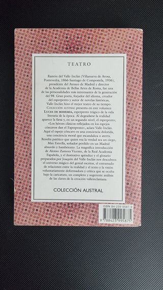 Luces de Bohemia y Esperpento, obras de Ramón María del Valle-Inclán, publicado por Austral Teatro en 2010. Buen estado interior, se hacen envíos se unifican lotes.