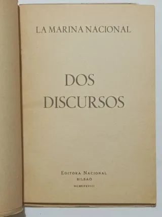 Editora Nacional Bilbao Dos discursos del 16 de Julio de 1938 - Juan Cervera Valderrama (Almirante Jefe del Estado Mayor de la Armada) - Ministro de Industria y Comercio Más información en fotos
