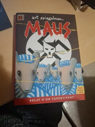 “Maus” de Art Spiegelman — Edición en catalán. Novela gráfica ganadora del Premio Pulitzer que narra con gran fuerza y sensibilidad la historia real del Holocausto a través de un estilo único. En muy buen estado.