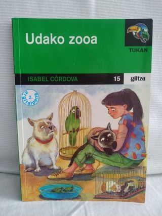 Libro en euskera Udako zooa, de la escritora Isabel Córdova, editorial Giltza del grupo Edebé. El libro es de formato bolsillo con tapas blandas, y tiene 103 páginas con varias ilustraciones. La historia nos habla de Amaia, una niña que tiene que quedarse en vacaciones a estudiar con su abuela Marixu por haber suspendido varias asignaturas. Lo que ninguna de las dos pueden imaginarse son las situaciones que vivirán cuando su casa se convierta en un verdadero zoológico cuando sus amigos empiecen a dejarles animales para que los cuiden. Está en buen estado. En mi perfil tengo mas libros y cuentos.