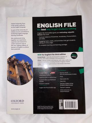 Libro de ejercicios de inglés de 1° ESO. Una parte escrito a lápiz (fácil de borrar). Editorial Oxford. ISBN 978-0-19-499949-6