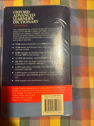Diccionario Oxford Pocket para estudiantes de inglés. Está un poco desgastado por fuera pero perfecto por dentro.