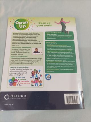 3º Primaria OXFORD - OPEN UP 3 CB ref: 9780194072618 - OPEN UP 3 AB EXAM ref: 9780194072410 En buen estado, el libro de Activity está relleno a lápiz y algún dibujo a lápiz de color, solo completado hasta la página 54 (la mitad aprox.) y el Class Book relleno a lápiz, por eso están a este precio.
