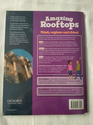 Vendo libro de inglés Amazing Rooftops, libro de clase class book 6, editorial Oxford, ISBN 9780194168458, algunos ejercicios escritos a lápiz pero está como nuevo, también tengo el libro de actividades activity book, hago envíos, preparo lotes, precio 4 euros, tengo dos ejemplares