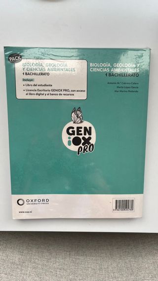 Libro 1 bachillerato sanitario en perfecto estado, sin utilizar y forrado. Oxford Geniox pro.