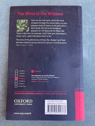 Libro de lectura en inglés de la colección Oxford Bookworns (Stage 3). La autora es Kenneth Grahame y su ISBN se puede comprobar en las fotos.