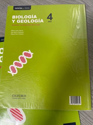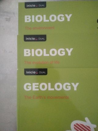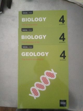 Pack de tres libros. Biology and Geology 4 Oxford education - Inicia Dual. Sin estrenar. El precio original ronda los 50 euros, yo te lo dejo a 19.50. ISBN: 9780190507046