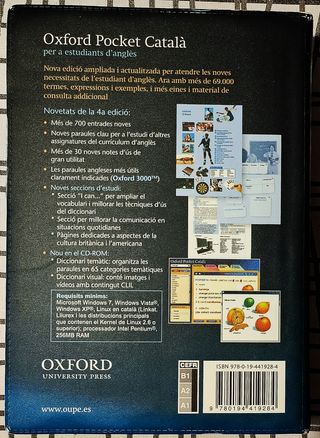 Diccionari Oxford Pocket Català per a estudiants d'anglès. ISBN:978-0-19-441928-4 Totalment nou, sense usar