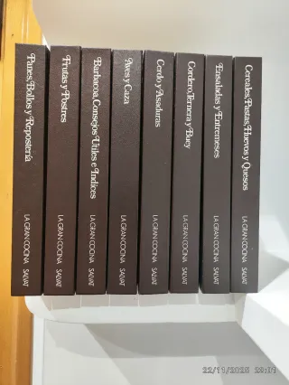 La Gran Cocina.Salvat.Consta de 14 tomos. 1 . Patés y Canapés. 2 . Pasteles y galletas 3 . Vinos y bebidas. 4 . Confitería y conservas. 5 . Salsas y sopas. 6 . Pescados y verduras. 7 . Cereales, Pastas, huevos y quesos. 8 . Ensaladas y entremeses. 9 . Aves y caza. 10. Cordero, ternera y buey. 11 . Barbacoa, Consejos e índices. 12 . Frutas y Postres. 13 . Panes, Bollos y Repostería. 14 . Cerdo y Asaduras. Están nuevos, sin usar. Tienes más cosas en mi perfil.