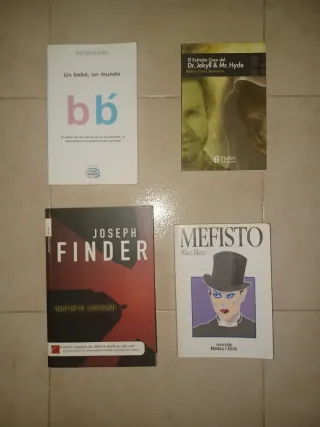 SÓLO ENVÍO CON CORREOS. EN MANO, EN MI DOMICILIO. - Un bebé, un mundo; Dra. Clasina Kraan; Plaza & Janés (Míster Baby); cm.; 270 pp.; Blanda; 8401520754/9788401520754. PRECIO: 1,50€. - El extraño caso del Dr. Jekyll y Mr. Hyde; Robert Louis Stevenson; Plutón Ediciones; 18x12€ cm.; 128 pp.; Blanda; 9788415089001. PRECIO: 1€. - Instinto asesino; Joseph Finder; (Thriller Award 2007); Roca Editorial; 21,50x15 cm.; 430 gr.; 458 pp.; Blanda; 9788496791824. PRECIO: 4€. - Mefisto; Klaus Mann; Salvat; Col. Novela y Ocio (Número 2); 18x13 cm; 288 gr.; 334 pp.; Blanda; 9788434584693. PRECIO: 1€.