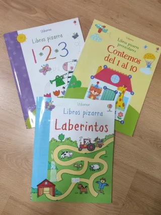 Pack de tres libros pizarra de Usborne. Uno sin usar y los otros están intactos porque los han usado poco nada. Se venden sin rotulador de pizarra blanca vileda