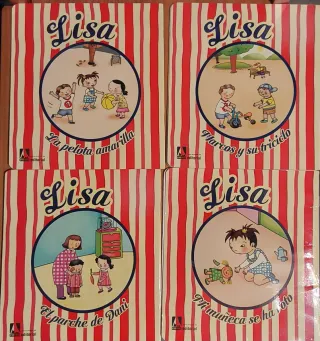 Libros para niños pequeños de 2 años o que están aprendiendo a leer, en la primera página cuenta la historia en un texto, pero el resto del libro son ilustraciones con frases muy cortas y en mayúsculas. Se cuentan 2 historias, y al final de cada historia hay unas sencillas preguntas. Cada libro 1€, y los 4 3,50€.